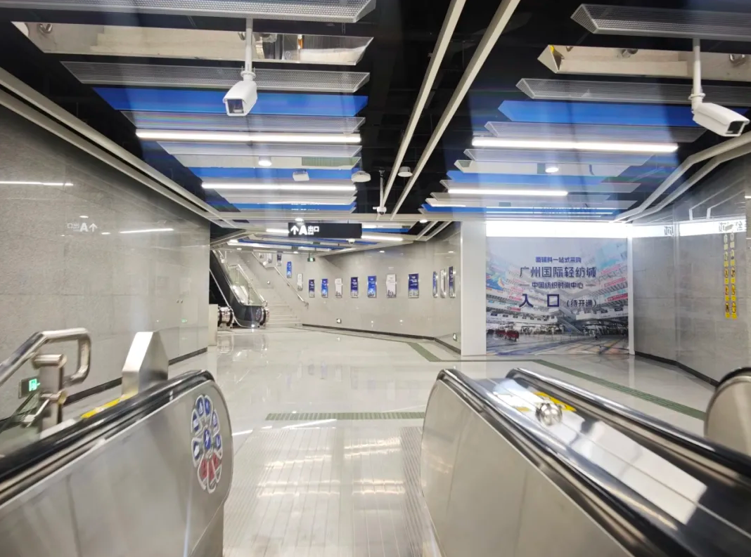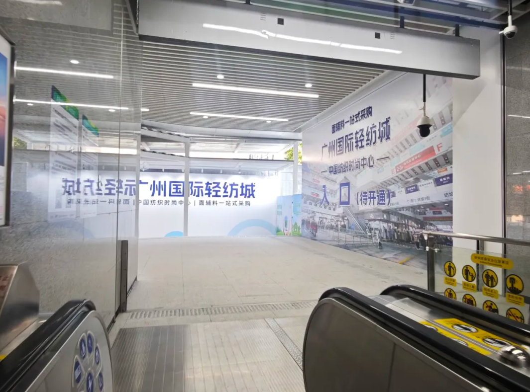 12月29日,广州地铁10号线“中大南门站”正式开通,站内大幅LED屏动态播放广州国际轻纺城的采购画面,扶梯两侧展示着广州国际轻纺城的商城实景,纺织采购氛围拉满。